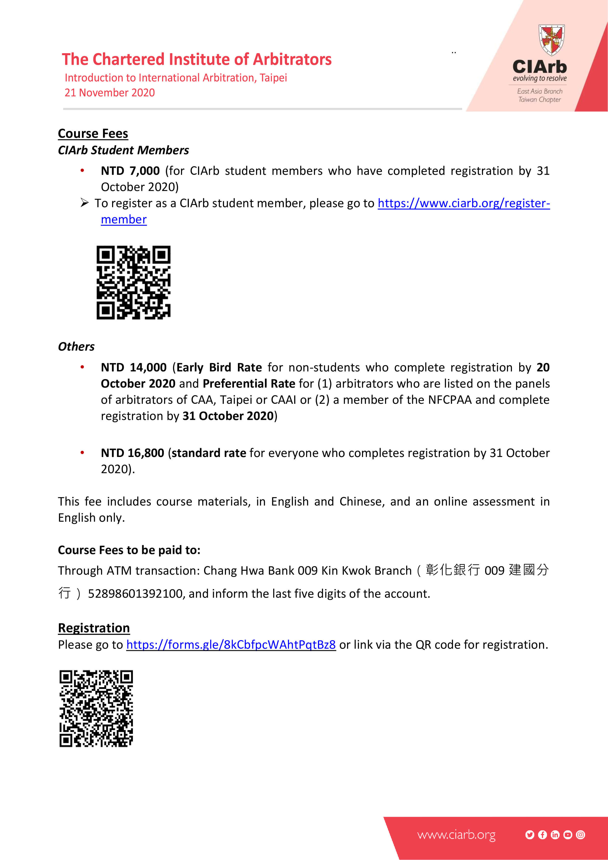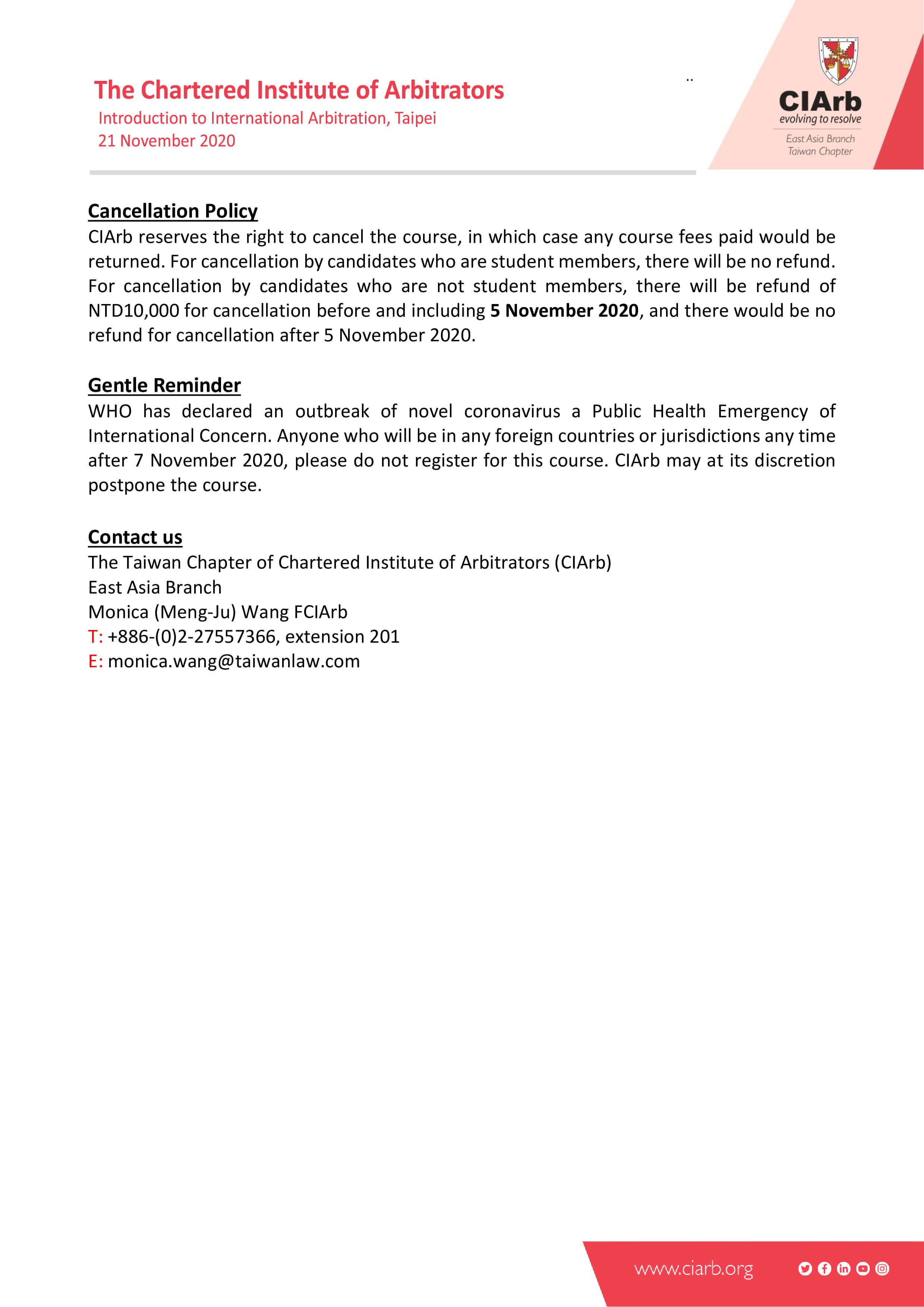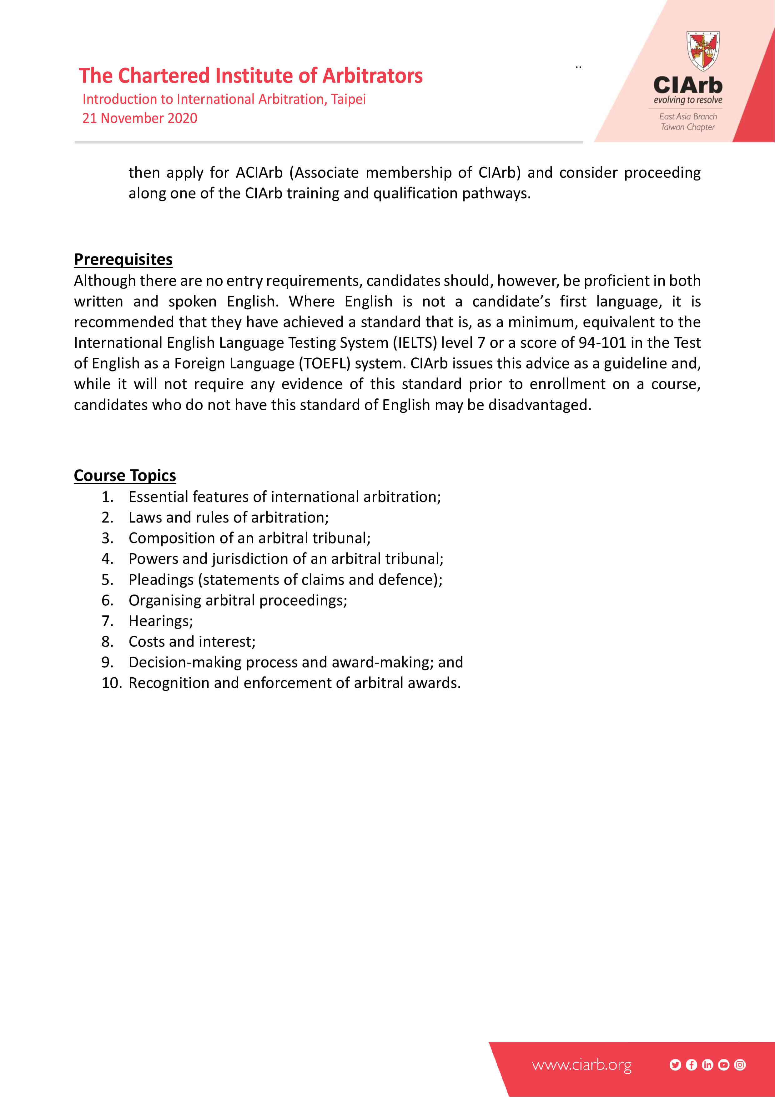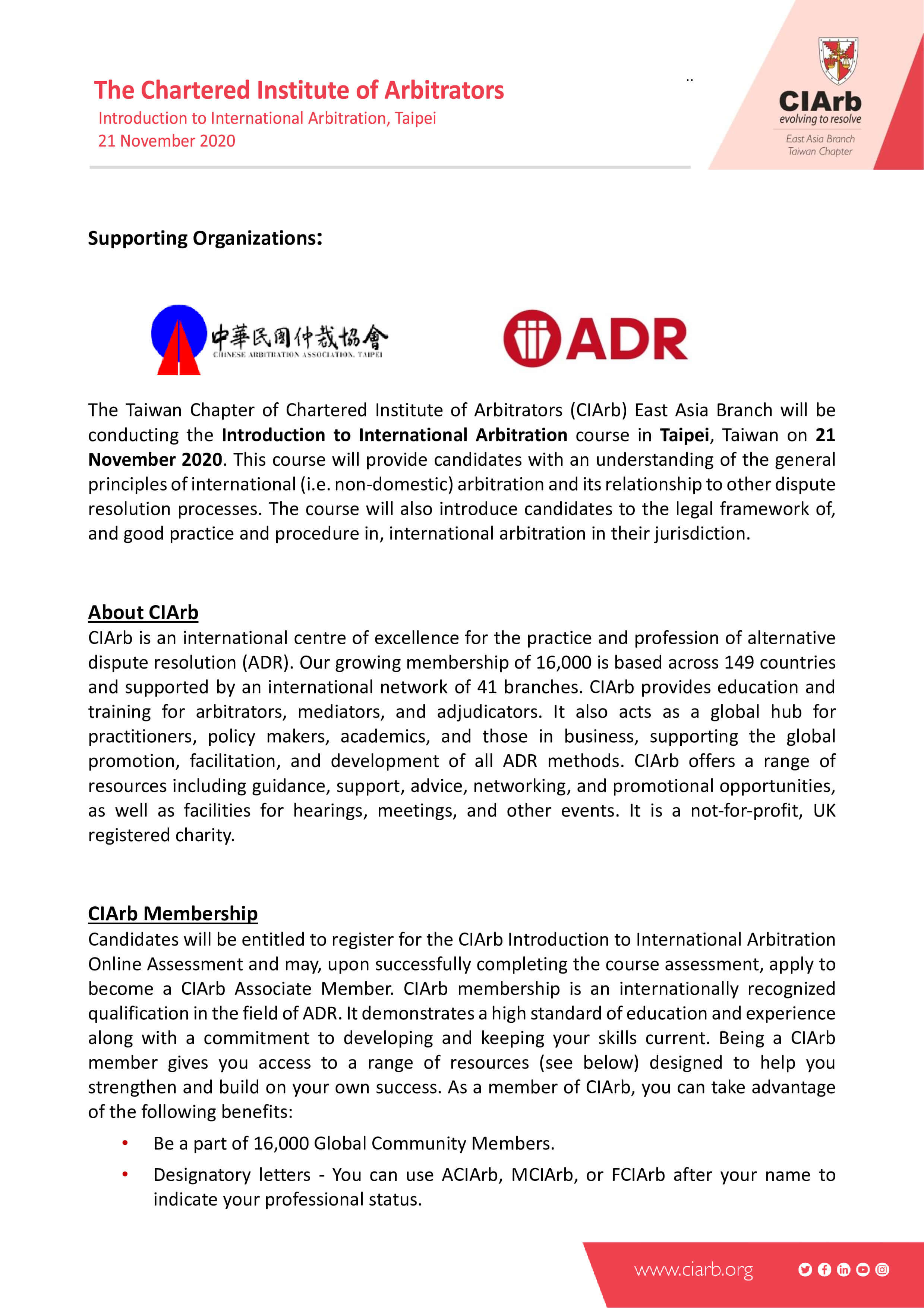 一、主辦單位:特許仲裁學會(CIArb)